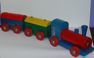 I'm really going to have to repackage this unseemly incident as some sort of war wound when I eventually sit down to write my autobiography. But for now it has to go down as karmic revenge for some things I've said in the past, seeing as the offending toy (that I'm not showing here on account of its grossness) belonged to a wooden set headlined by this pair: